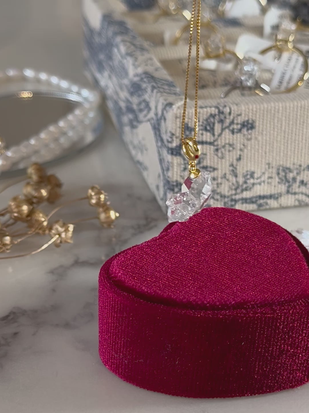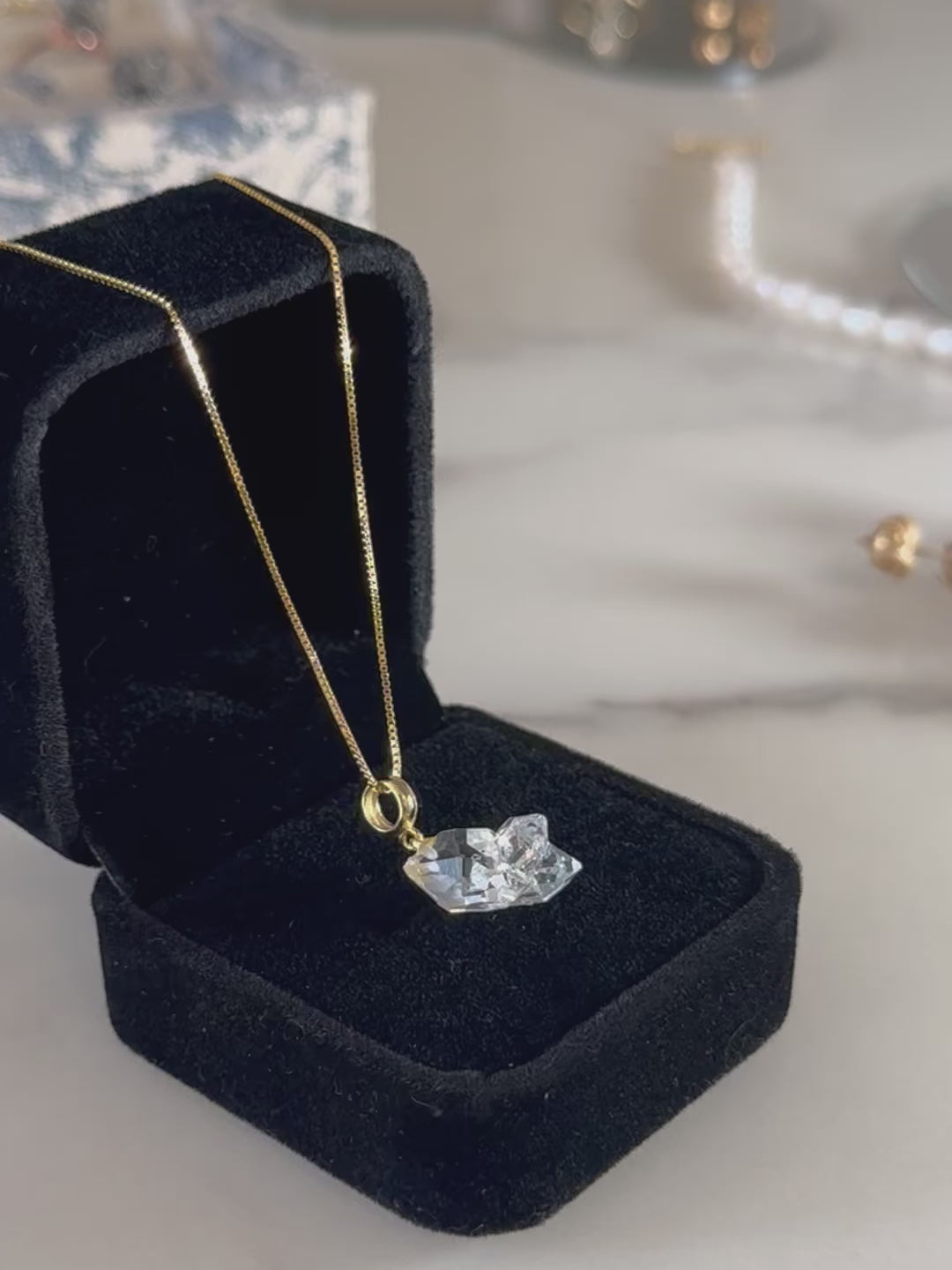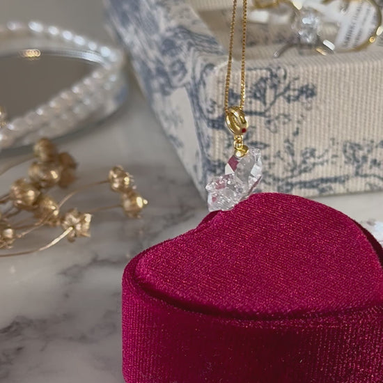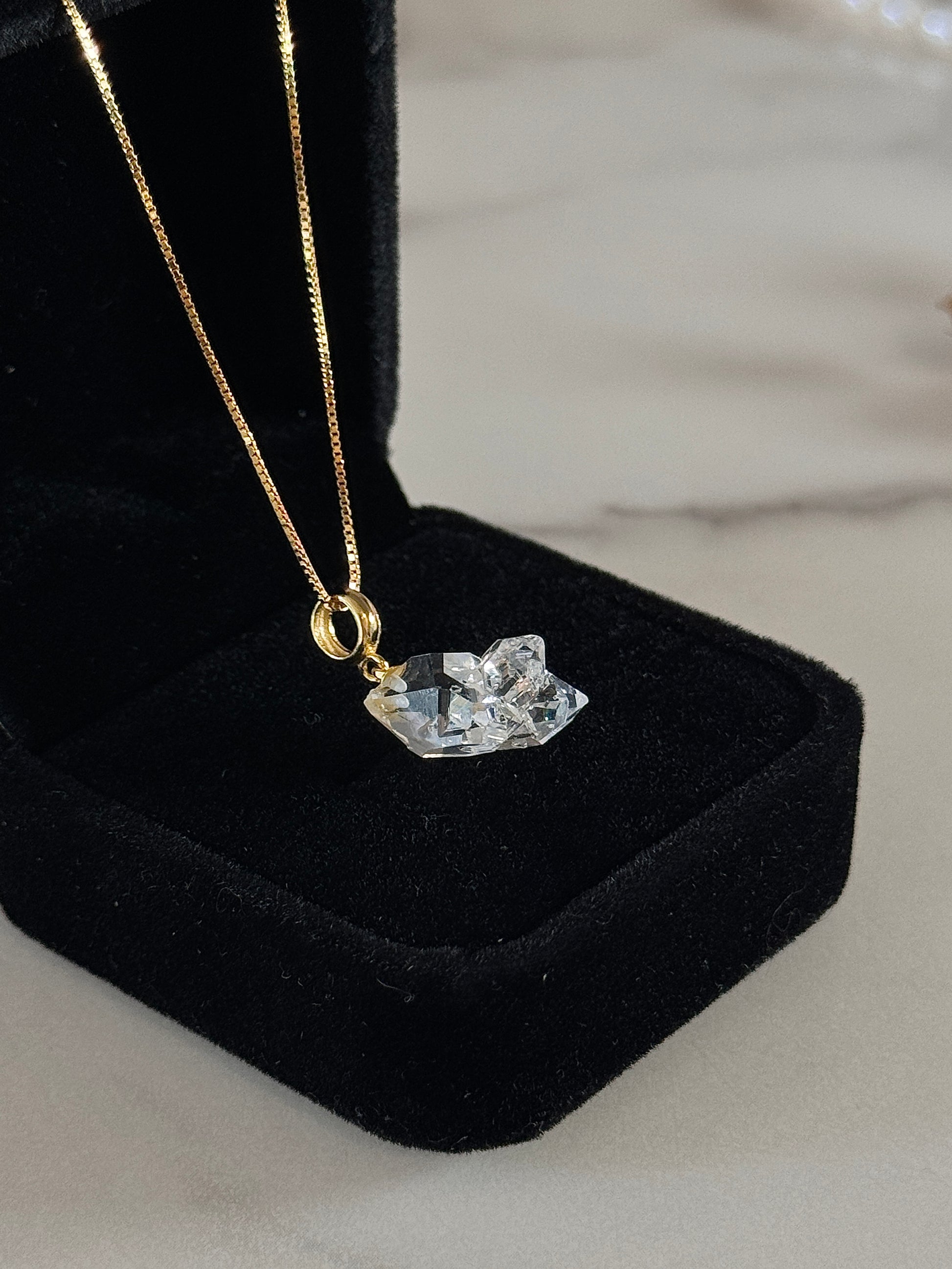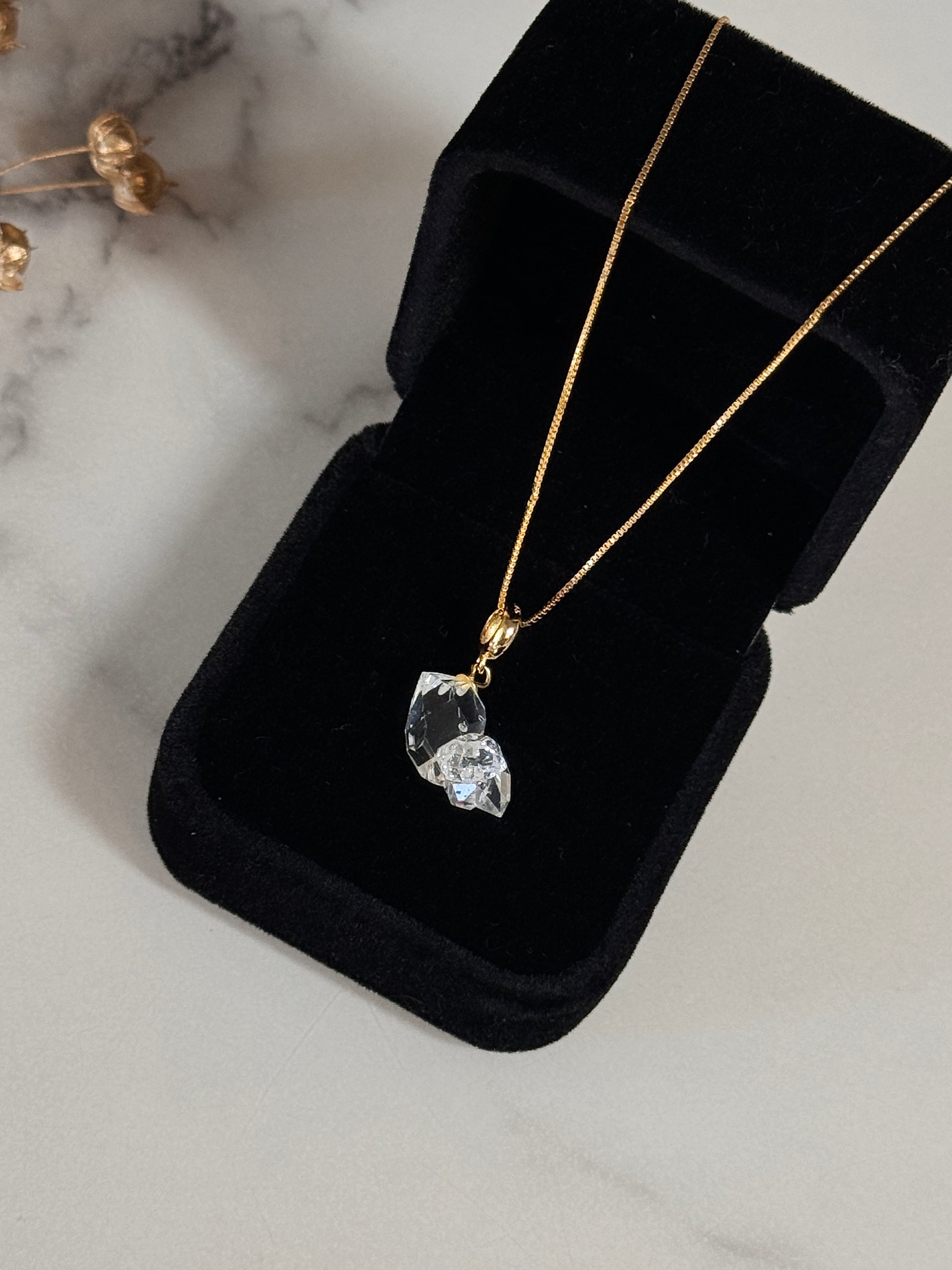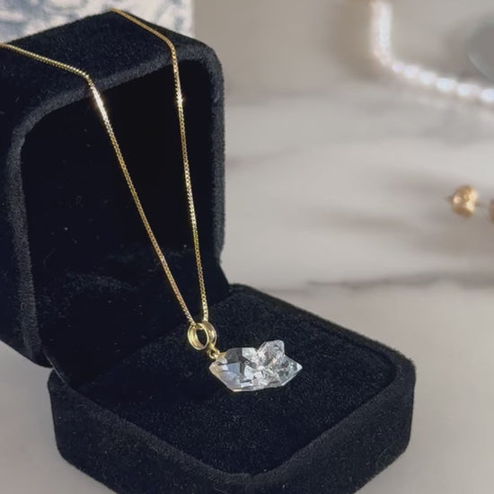 每顆赫基默閃靈鑽都是獨特的,配有18k金色鍍層。赫基默閃靈鑽是一種主要透明的美麗寶石。它是最強大的療癒水晶之一,用於實現佩戴者的夢想並使工作願景更清晰。