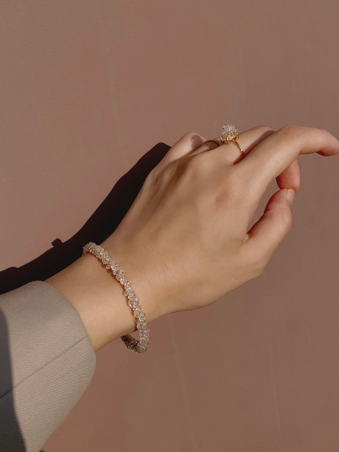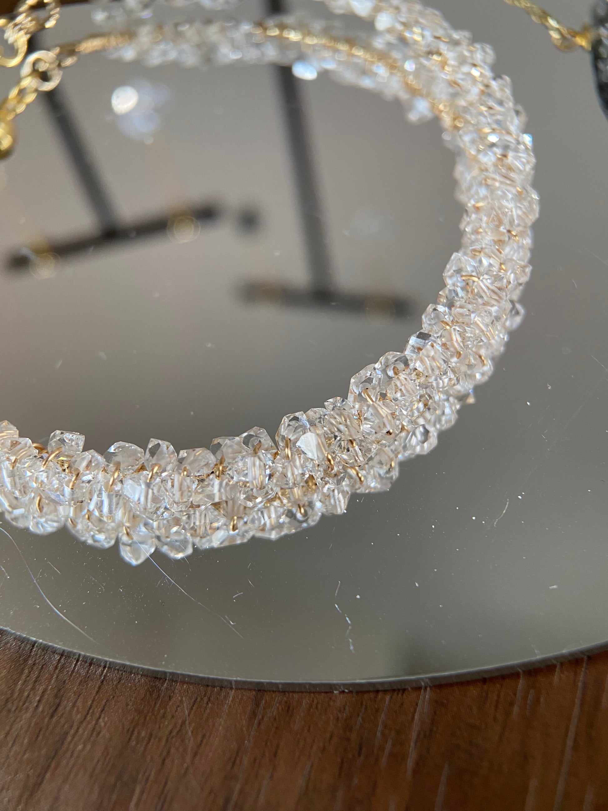 手工製作的 Herkimer 手工繞線赫基默閃靈手鐲