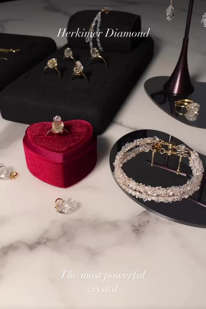 每顆赫基默閃靈鑽都是獨一無二的。赫基默閃靈鑽是一種華麗的寶石,外觀基本上是透明的。它是最強大的治癒水晶之一,用於體現佩戴者的夢想,使工作願景更加清晰。