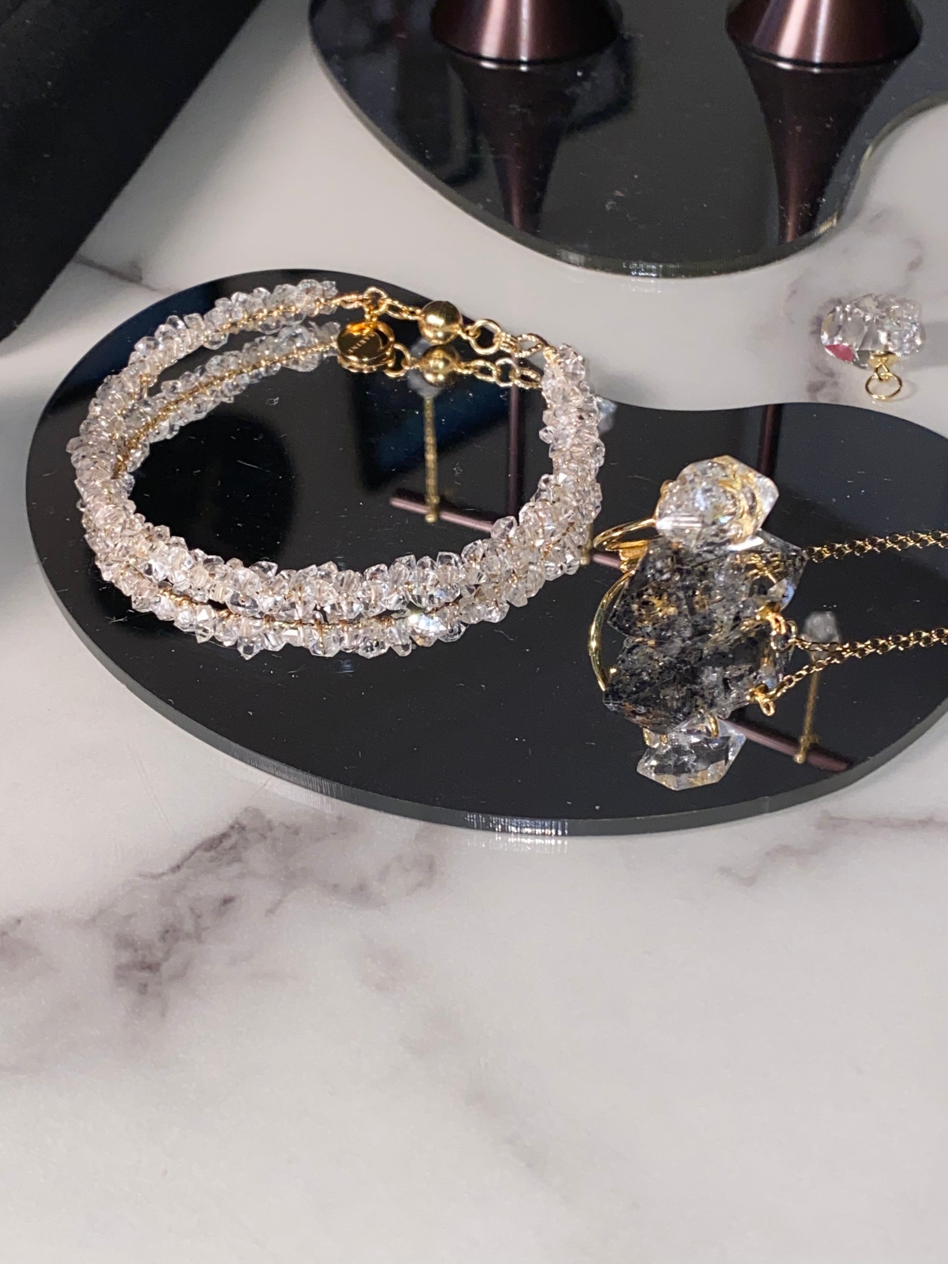 我們赫基蒙閃靈鑽系列產品均選用來自美國紐約州赫基蒙郡的閃靈鑽石水晶。